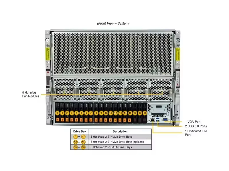 Equipado con GPU NVIDIA Blackwell B300, este servidor ofrece un rendimiento significativamente mayor tanto para entrenamiento como para inferencia en comparación con generaciones anteriores. Admite la precisión de FP8 y FP4, acelerando los ciclos de entrenamiento de modelos grandes hasta 3 veces.